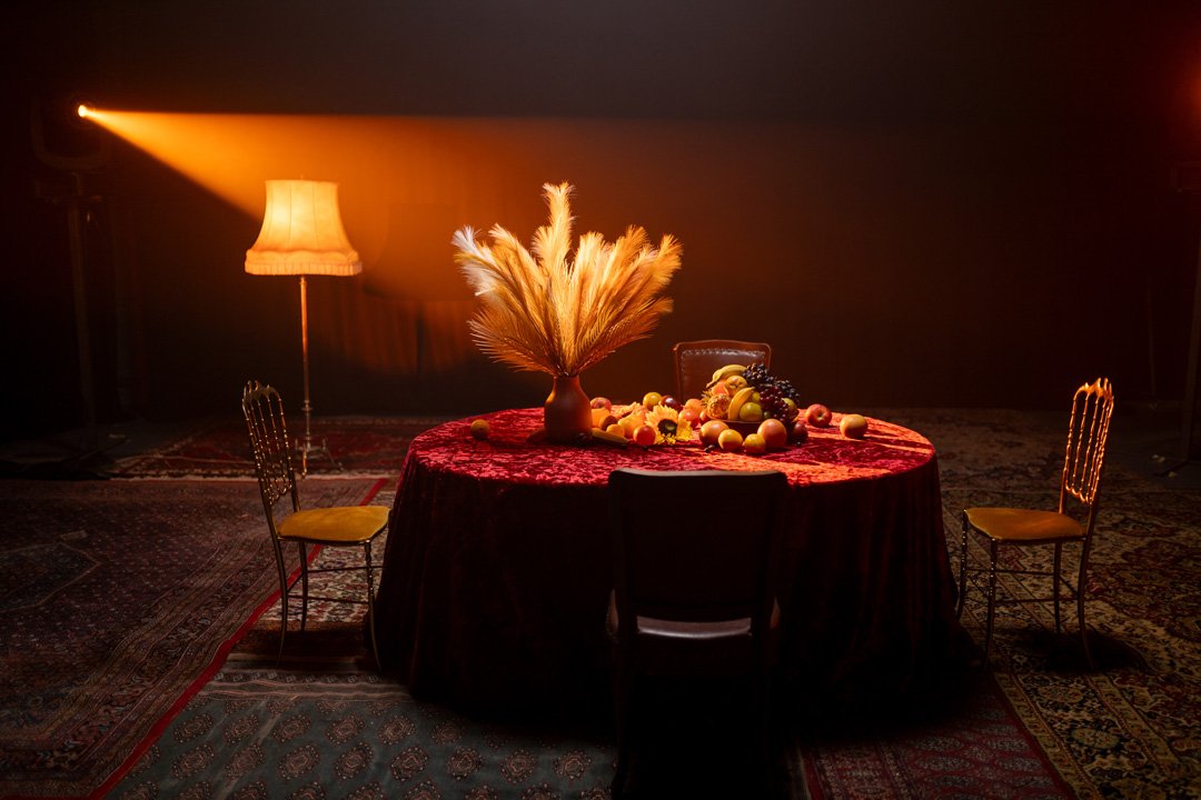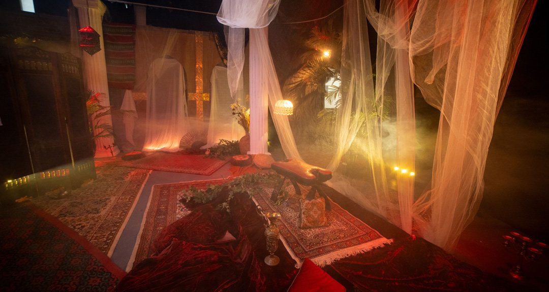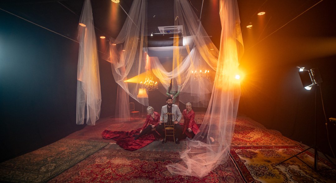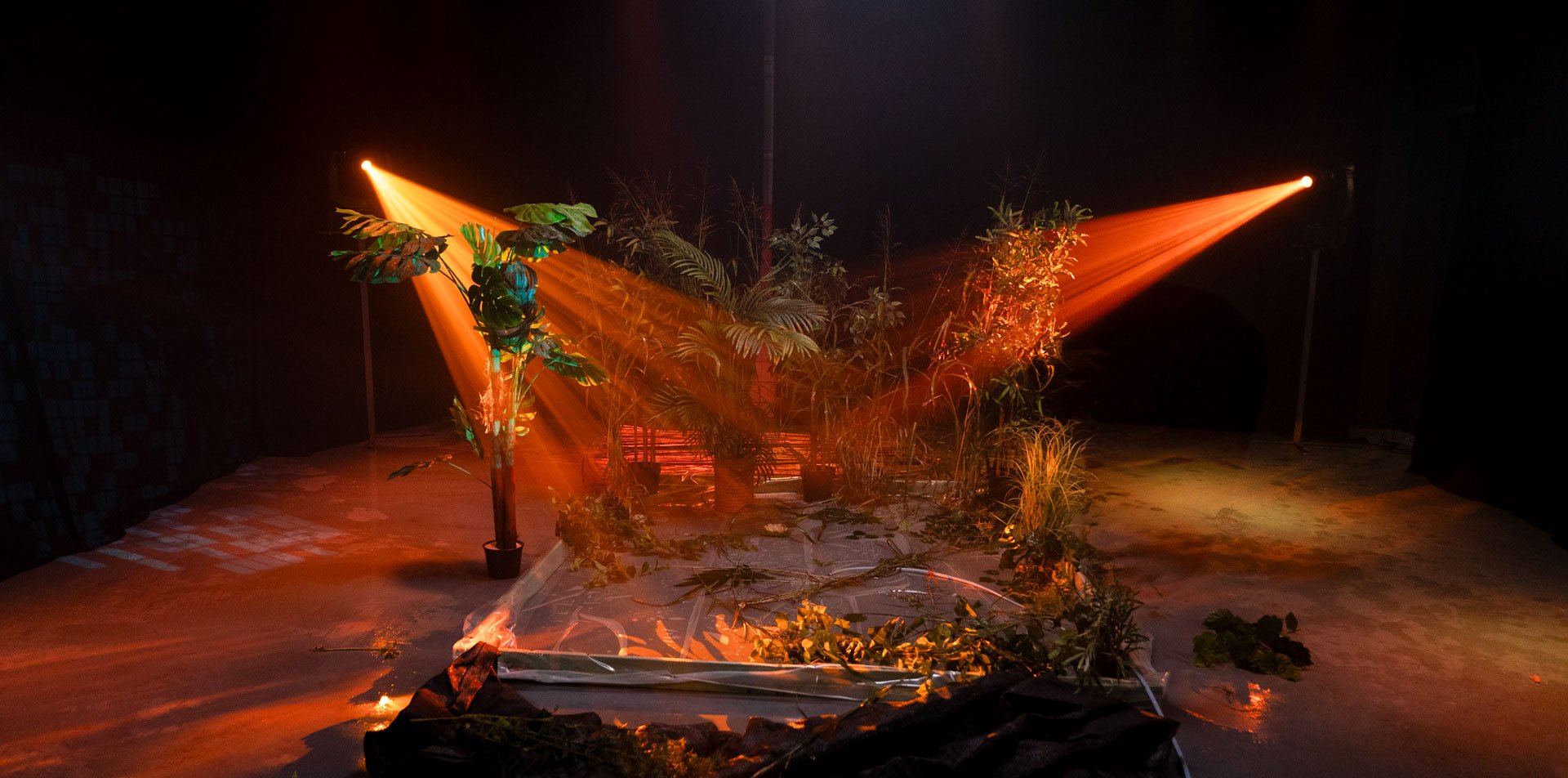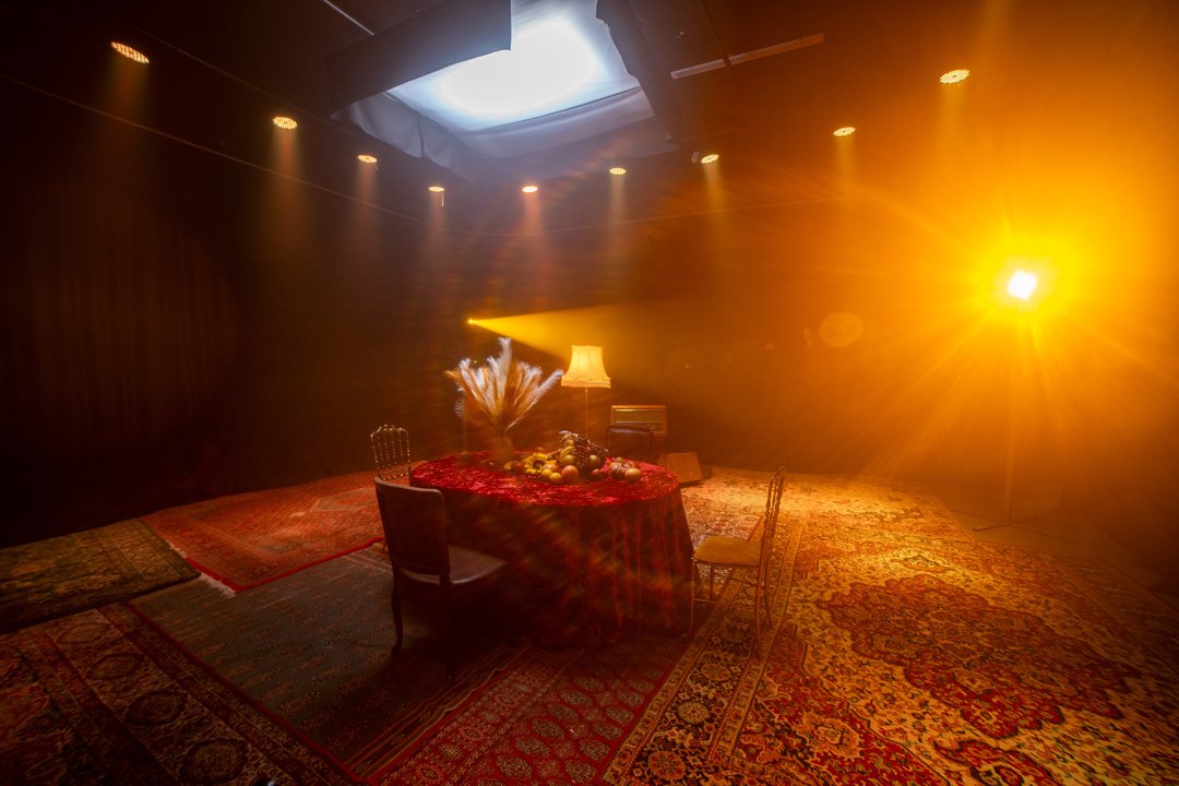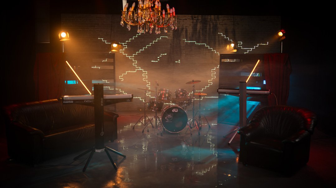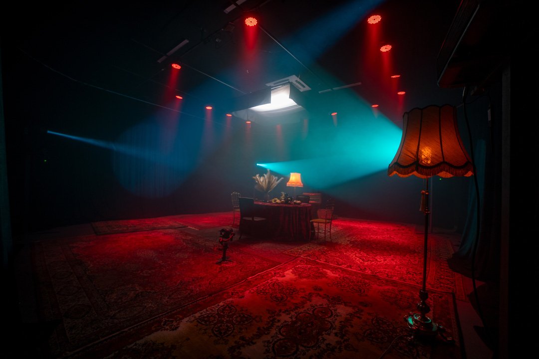 Na raspolaganju Vam je 4 roto glave 1200w sa HMI sijalicama. Roto glava poseduje set boja i set goboa kao i promenu optike. Posedujemo RGB panele koji su montirani na infiniti ciklorami radi bojenja kao i 2 LED RGB panela od 600w rakođe za meko bojenje scene. Na crnom delu su montirani voševi za bojenje scene. Blinderi 3x100 3200k koji upotpunjuju scenu i proizvode odlične scenske efekte, takođe imamo i dim mašinu ili hejz mašinu.